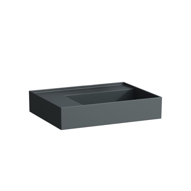 Kartell laufen lavabo mural ou à poser sur meuble, tablette à gauche, avec écoulement caché non percé, sans trop-plein 600x460x120mm graphite mat