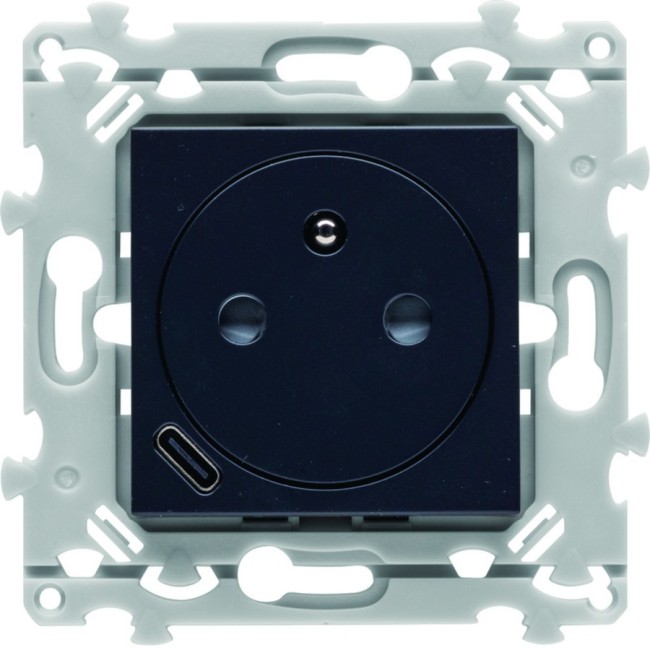La prise de courant affleurante WE114A finition Anthracite fait partie de la gamme essensya. Un port USB-C de puissance 7,5W est intégré dans la prise. Cette référence regroupe le support, le mécanisme et l'enjoliveur.