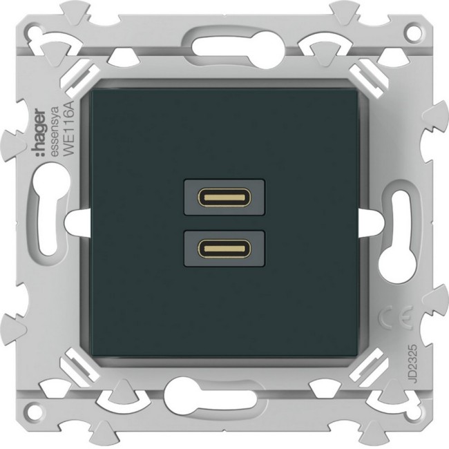 Chargeur essensya double USB C+C 20W anthracite - HAGER WE116A
