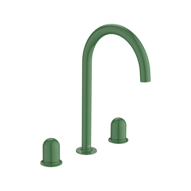 Nu mélangeur pour lavabo "l" 3 trous corps lisse avec flexibles d’alimentation et poignée dôme vert menthe