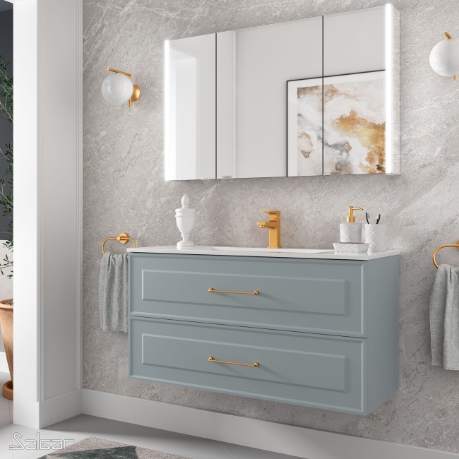 Meuble de salle de bain 100cm 2 tiroirs Blue Fog Renoir de Salgar: Meuble salle de bain au style épuré pour un design intemporel !