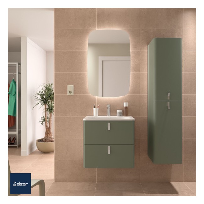 Meuble de salle de bain 2 tiroirs Salvia UNIIQ 600 Salgar : Un détail pensé pour transformer votre salle de bain ! Meuble de salle de bain UNIIQ 600 2 tiroirs à fermeture amortie Salvia . Dimensions : 598 x 540 x 450 mm. Finition extérieure : Salvia . Finition intérieure : onix . Poignées et pieds : en option, à commander séparément. Matériaux : Bois. Chant du meuble : en PVC et colle PUR. Ouverture : Large. Système de fermeture : Fermeture amortie. Panneau stratifié : 16 mm. Garantie 5 ans. Faites de votre salle de bain un espace unique et irremplaçable avec UNIIQ , signé Salgar . Ce meuble se distingue par sa capacité à s’adapter parfaitement à vos besoins et à sublimer votre intérieur.
