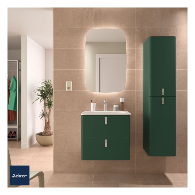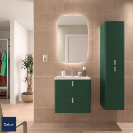 Meuble de salle de bain 2 tiroirs Salvia UNIIQ 600 Salgar : Un détail pensé pour transformer votre salle de bain ! Meuble de salle de bain UNIIQ 600 2 tiroirs à fermeture amortie Salvia . Dimensions : 598 x 540 x 450 mm. Finition extérieure : Salvia . Finition intérieure : onix . Poignées et pieds : en option, à commander séparément. Matériaux : Bois. Chant du meuble : en PVC et colle PUR. Ouverture : Large. Système de fermeture : Fermeture amortie. Panneau stratifié : 16 mm. Garantie 5 ans. Faites de votre salle de bain un espace unique et irremplaçable avec UNIIQ , signé Salgar . Ce meuble se distingue par sa capacité à s’adapter parfaitement à vos besoins et à sublimer votre intérieur.