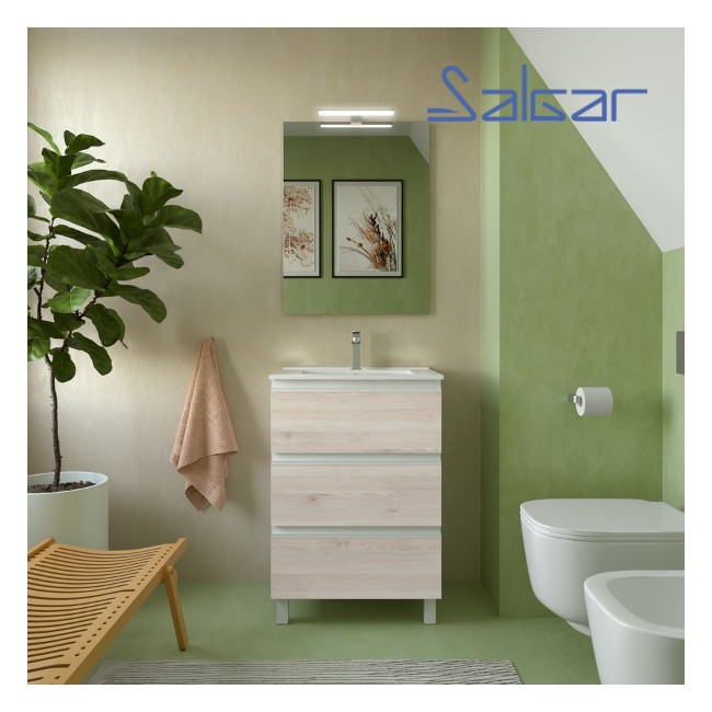 Meuble de salle de bain 3 tiroirs CHÊNE NATUREL SPIRIT 600 Salgar : Une organisation sans effort pour la salle de bain !