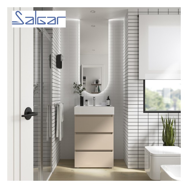 Dans la série Spirit, vous pouvez choisir entre un meuble de salle de bain à deux ou trois tiroirs, avec protège-siphon et dans six tailles disponibles. De plus, tous auront un intérieur en Carbon-Tx, un design exclusif Salgar et des tiroirs en métal à extraction totale.