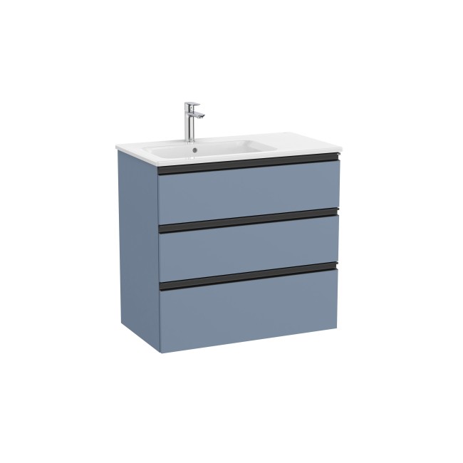 The Gap Unik 3 Tiroirs Lavabo À Gauche 800 Mm Bleu Mat/ Poignées Noires - ROCA A851487548