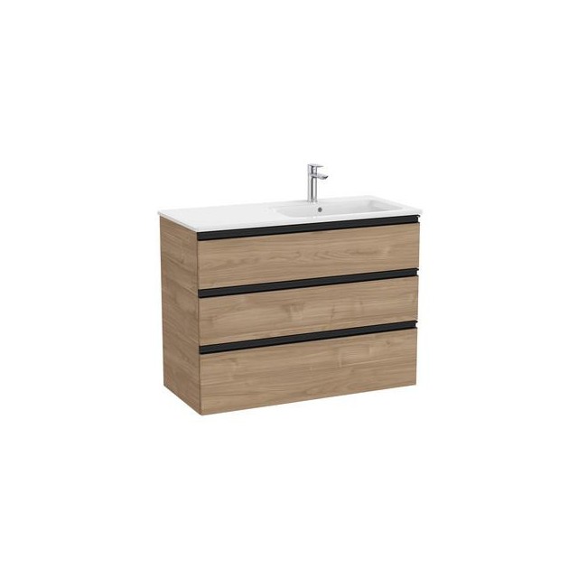 The Gap Unik 3 Tiroirs Lavabo À Droite 1000 Mm Noyer/Poignées Noires - ROCA A851492517