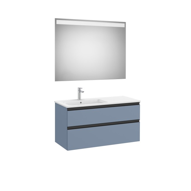 The Gap Pack 2T Lavabo À Gauche (Unik+Miroir) 1000Mm Bleu Mat/ Poignées Noires - ROCA A851514548