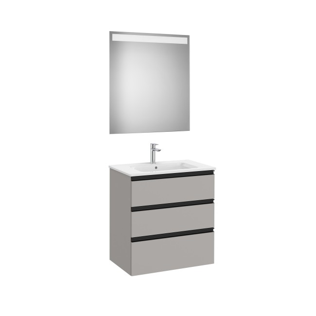 The Gap Pack 3 Tiroirs (Unik+Miroir) 700Mm Gris Moyen Mat/Poignées Noires - ROCA A851518547