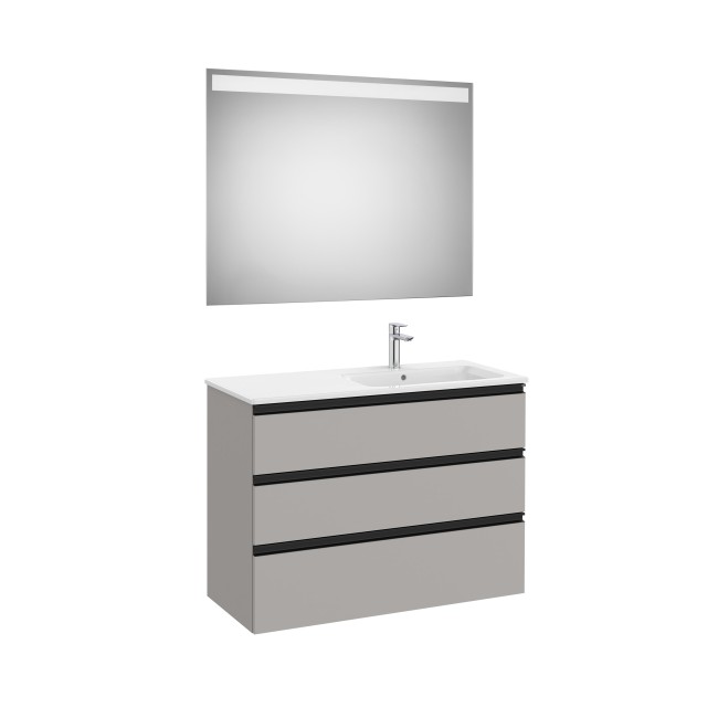 The Gap Pack 3T Lavabo À Droite 1000Mm Gris Moyen Mat/Poignées Noires - ROCA A851523547