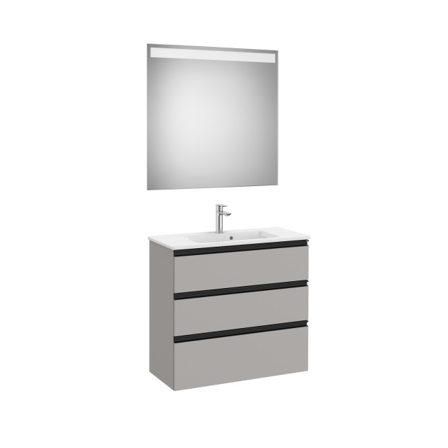 The Gap Pack Compact 3T (Unik+Miroir) 800Mm Gris Moyen Mat/Poignées Noires - ROCA A851530547