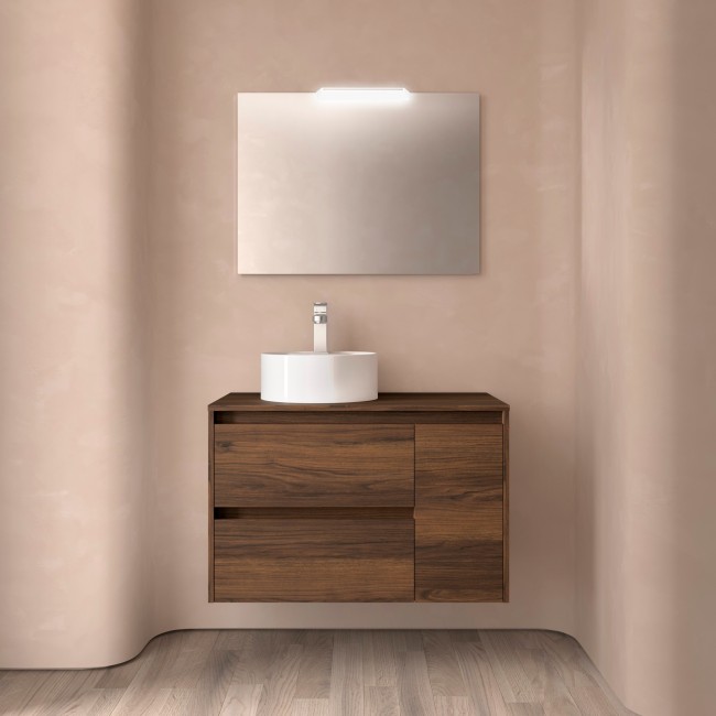 Meuble salle de bains et plan de toilette 85cm 2 tiroirs 1 porte à droite Noyer Maya NOJA : Concevez votre salle de bains comme vous le souhaitez avec la qualité Salgar !