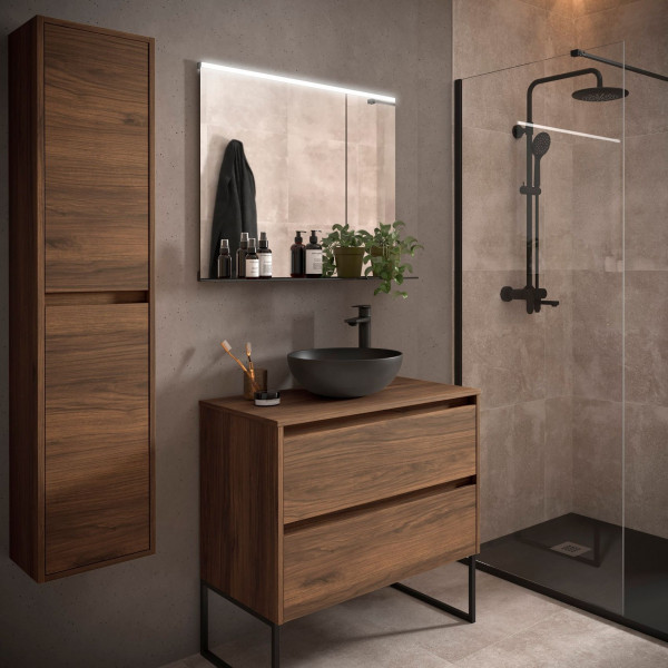 Le meuble de salle de bain Noja est disponible en 600, 700, 800, 900, 1000, 1200 ou 1400 mm avec une profondeur de 45 mm.