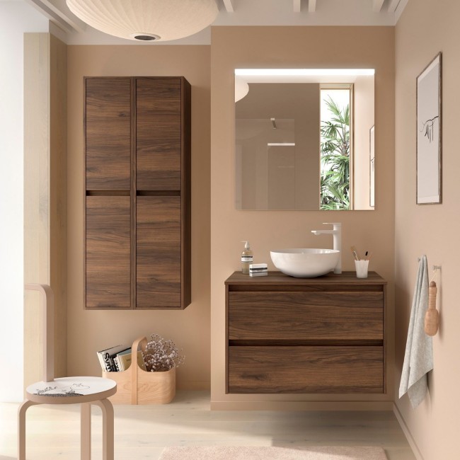 Meuble salle de bains 100cm 2 tiroirs Noyer Maya NOJA : Concevez votre salle de bains comme vous le souhaitez avec la qualité Salgar !