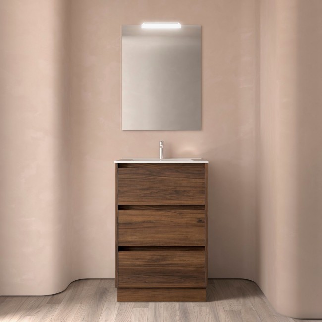 Meuble salle de bains 60cm 3 tiroirs Noyer Maya NOJA : Concevez votre salle de bains comme vous le souhaitez avec la qualité Salgar !