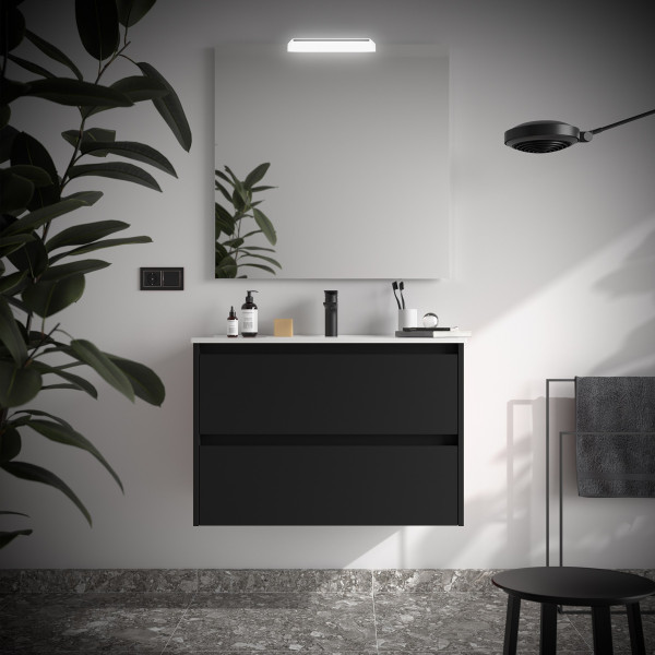 Le meuble de salle de bain Noja est disponible en 600, 700, 800, 900, 1000, 1200 ou 1400 mm avec une profondeur de 45 mm.