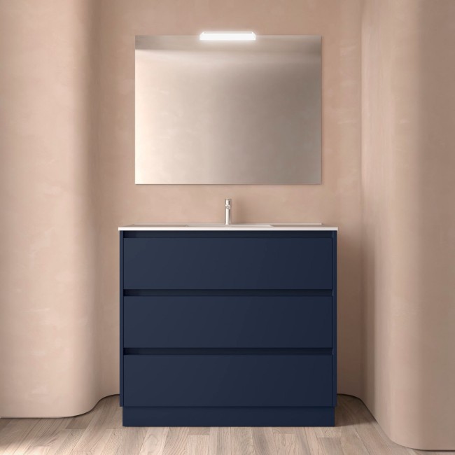 Meuble salle de bains 100cm 3 tiroirs Blue Satin NOJA : Concevez votre salle de bains comme vous le souhaitez avec la qualité Salgar !