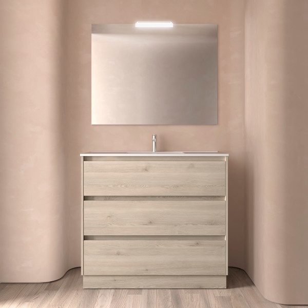 Le meuble de salle de bain Noja est disponible en 600, 700, 800, 900, 1000, 1200 ou 1400 mm avec une profondeur de 45 mm.