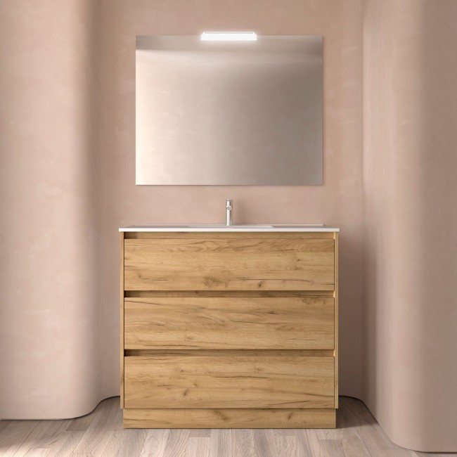 Meuble salle de bains 100cm 3 tiroirs Chêne Africain NOJA : Concevez votre salle de bains comme vous le souhaitez avec la qualité Salgar !