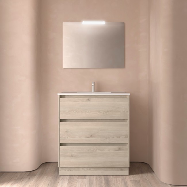 Meuble salle de bains 80cm 3 tiroirs Chêne Naturel NOJA : Concevez votre salle de bains comme vous le souhaitez avec la qualité Salgar !
