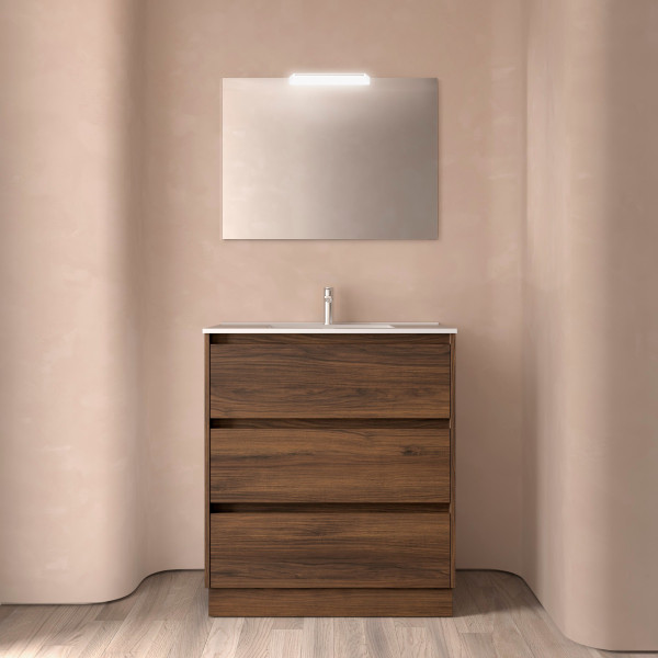 Le meuble de salle de bain Noja est disponible en 600, 700, 800, 900, 1000, 1200 ou 1400 mm avec une profondeur de 45 mm.