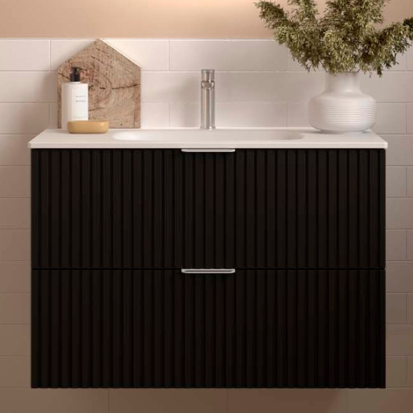 La collection BIBA vous offre une salle de bains au design unique et fonctionnel. Désormais disponible avec deux tiroirs, elle maximise l'espace de rangement grâce à des tiroirs grande capacité équipés de la technologie Grass V8 et d'un organiseur inclus. Ses façades aux rainures verticales apportent un motif rythmique distinctif. Personnalisable avec trois options de poignées et une variété de finitions, BIBA permet de créer un espace qui vous ressemble. Complétez votre ensemble avec un pilier assorti et ajoutez une coiffeuse (lisse ou rainurée) pour un effet optique surprenant ou une harmonie parfaite.