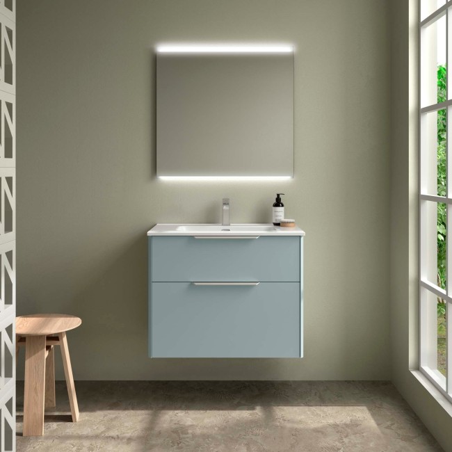 Ensemble LUVA 800 2 tiroirs Aqua (Meuble de salle de bain+plan vasque+miroir) dimensions mm: largeur 800 x profondeur 450 Suspendu Réf. 119857 SALGAR