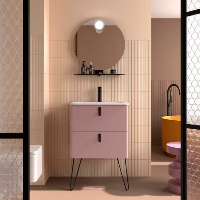 Meuble salle de bain UNIIQ 600 2 tiroirs Rose blush H540 P450 - SALGAR 119872