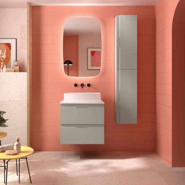 Meuble de salle de bain EMMA 600 2 tiroirs Moon Grey métallique V8 Grass ouverture totale fermeture amortie dimensions mm: largeur 600 x hauteur 540 x profondeur 450 Suspendu Réf. 119041 SALGAR