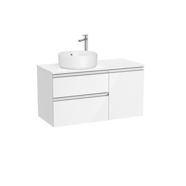 The gap meuble 2t+1p pr vasq à gche 1000 blanc brillant/poignées alu brillantes - ROCA A851957806