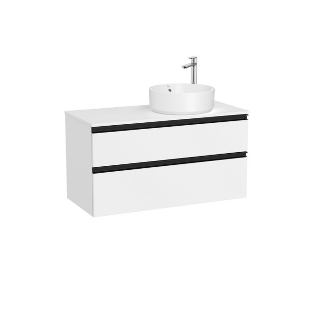 The gap meuble 2t pr vasq à dte (meuble+plan) 1000 mm blanc mat/poignées noires - ROCA A851958509