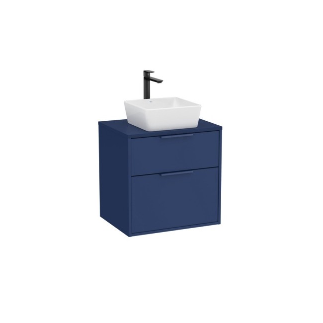 Optica meuble 2 tiroirs pour vasque à poser + plan 600 mm bleu acier mat