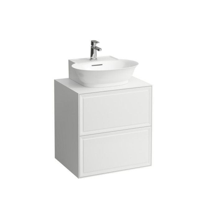 The new classic meuble 600, 2 tiroirs, avec découpe centrale, pour lave-mains à poser 816852 575x455x600mm blanc mat