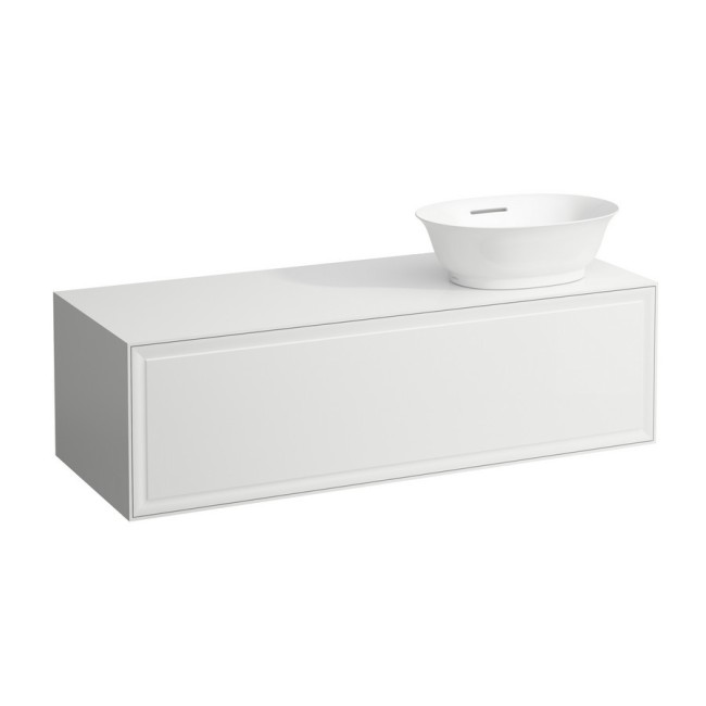 The new classic meuble 1200, 1 tiroir, découpe à droite, pour vasques à poser 812850, 812851, 812852, 812853 1175x455x345mm blanc mat