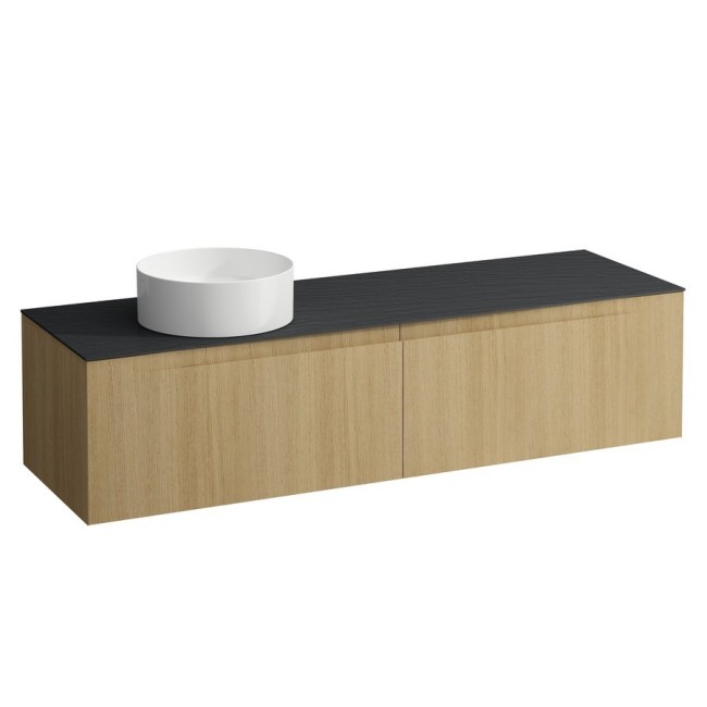Arun meuble 1600 2t avec découpe à gche plan ardesia nera chêne clair - LAUFEN H4151421512501