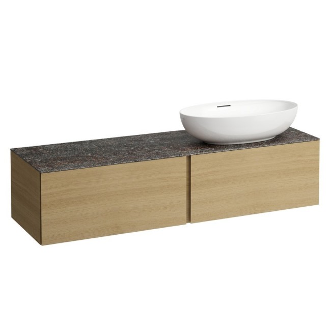 Ilbagnoalessi meuble sous vasque 1600, 2 tiroirs, avec découpe à droite, plan marrone naturale, trou pré-percé pour la robinetterie, pour lavabos h818975/6, h818977/8 1600x500x370 mm chêne clair