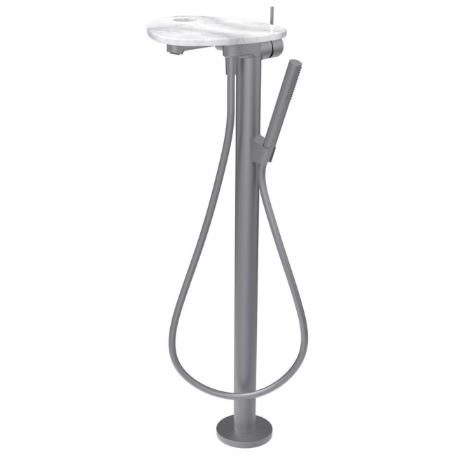 Ada mitigeur de bain sur colonne, tablette percée pour ajout porte-bijou ou porte-savon, bec 203 mm, avec flexible et douchette pvd inox/marbre blanc