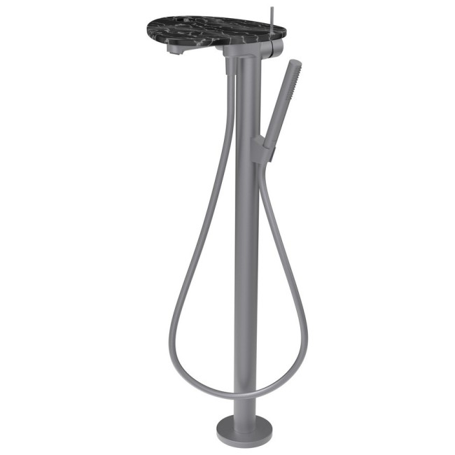 Ada mitigeur de bain sur colonne, tablette percée pour ajout porte-bijou ou porte-savon, bec 203 mm, avec flexible et douchette pvd inox/marbre noir