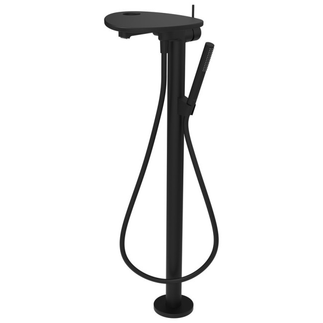 Ada mitigeur de bain sur colonne, tablette percée pour ajout porte-bijou ou porte-savon, bec 203 mm, avec flexible et douchette pvd noir/noir mat