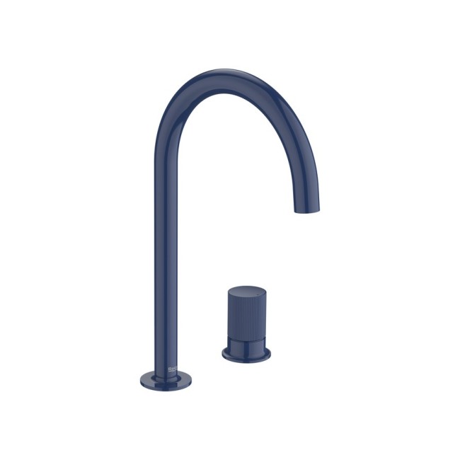 Nu mitigeur lavabo "l" 2 trous corps lisse poignée cannelée bleu cobalt - ROCA A5A3D3FP00