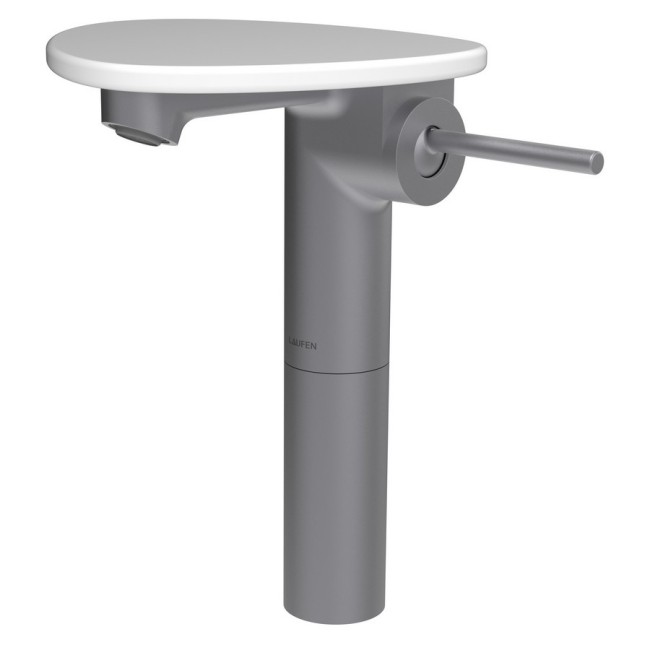 Ada mit lav réhaussé tablette non percée bec 110 mm ss vidage pvd inox/blanc mat - LAUFEN HF506714502060