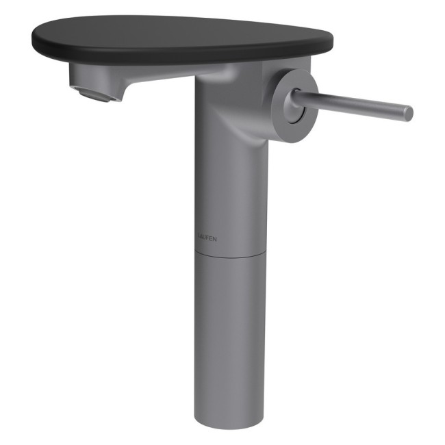 Ada mit lav réhaussé tablette non percée bec 110 mm ss vidage pvd inox/noir mat - LAUFEN HF506714503060