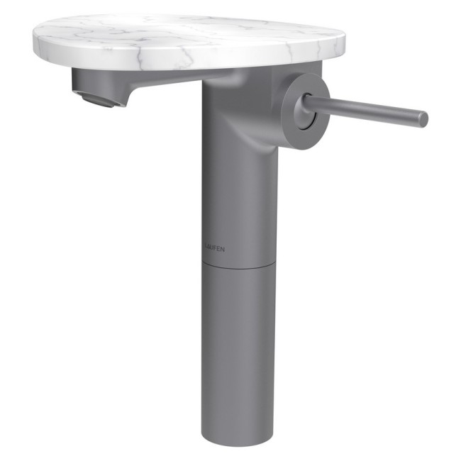 Ada mit lav réhaussé tablette npbec 110 mm ss vidage pvd inox/marbre blanc - LAUFEN HF506714505060