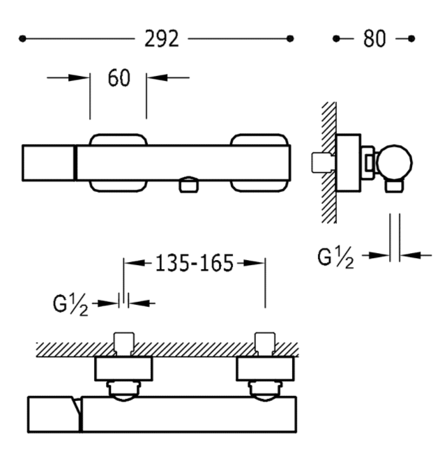 Kit de douche thermostatique électronique et encastré SHOWER TECHNOLOGY · Contrôle électronique compris (blanc).· Centrale thermostatique électronique incluse (2 voies).· Douche fixe de Ø 300 mm. à rotule. Matière Laiton (1.34.137.30).· Coude mural (20 - TRES 09286567