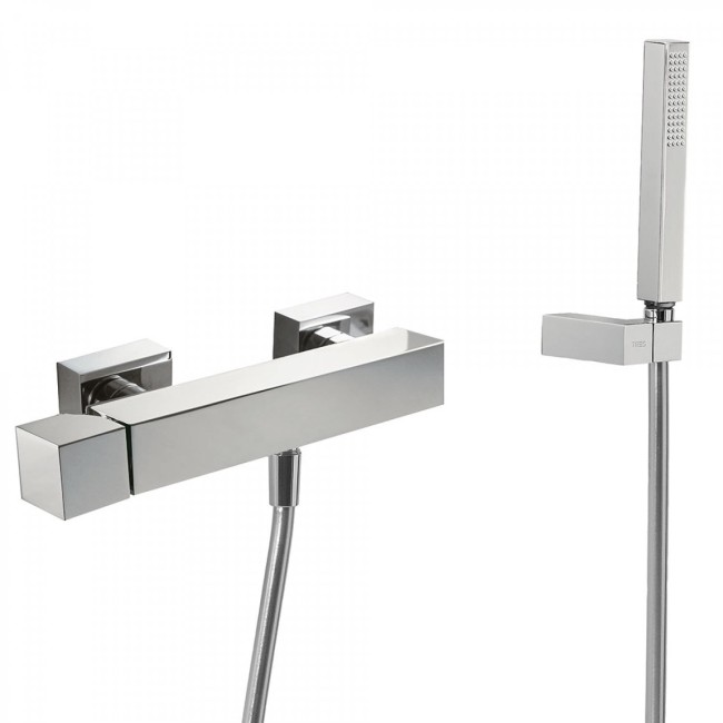 Mitigeur douche Douchette à main anticalcaire avec support orientable et flexible satin - TRES 107167