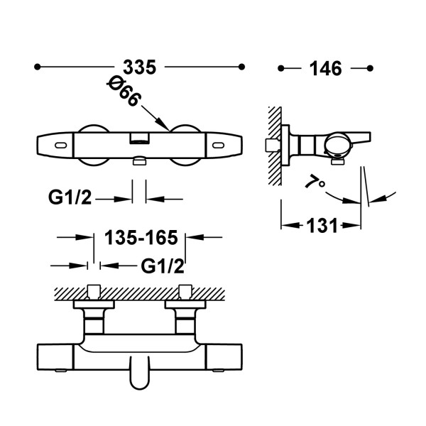 Robinet thermostatique mural pour baignoire et douche Douchette à main anticalcaire en laiton. Support orientable pour douchette à main. Flexible satin. Volant ovale.