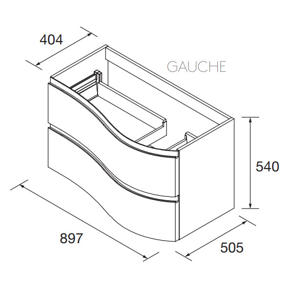 | Libellé produit | Meuble salle bain MAM 900 gauche, 2 tiroirs métal.anthracite mat 897x540x505mm |