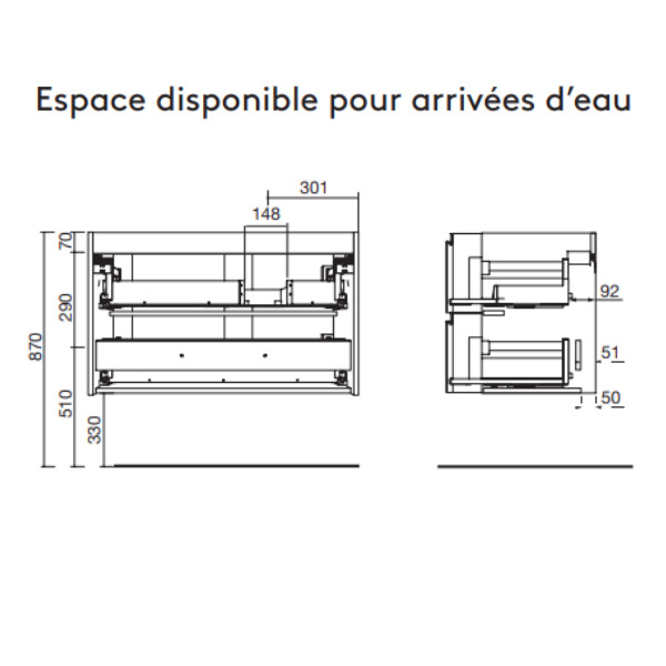 ATTENTION: cette fiche concerne uniquement le meuble bas: le meuble latéral, les poignées, vasque, robinetterie, autres meubles et accessoires sont à acheter séparément.