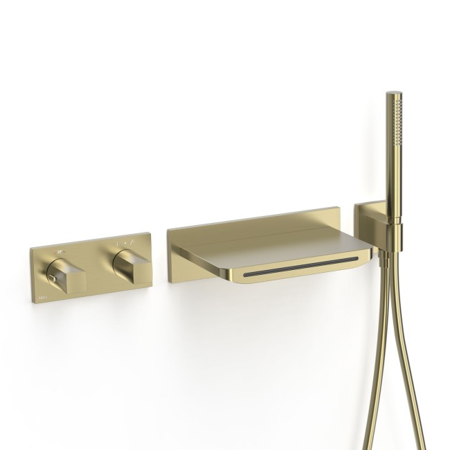 Kit robinet thermostatique encastré 2 voies pour baignoire et douche B-system Cava doré  - TRES 30725207CA
