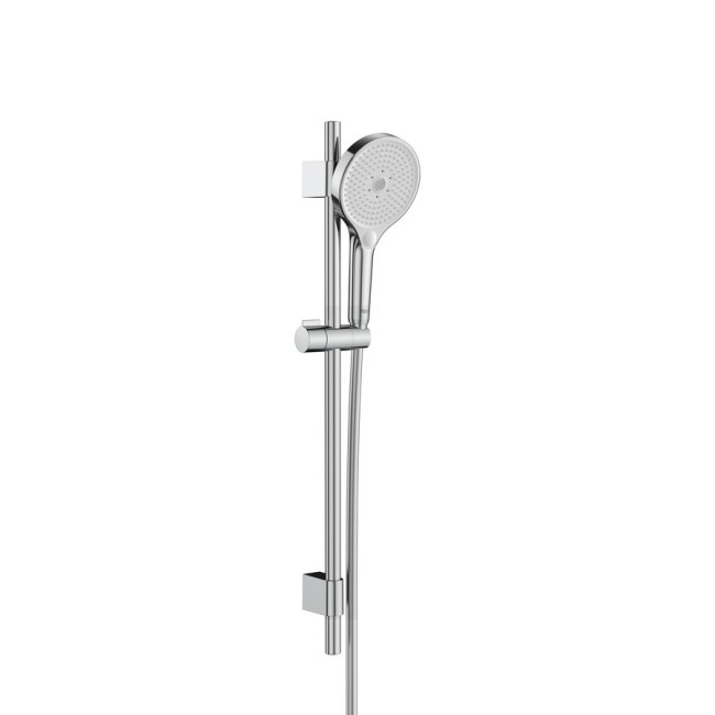 Plenum round 130/3 kit composé d'une barre coulissante de 700 mm, d'une douchette plenum round ø 130, d'un flexible pvc satiné de 1,70 m. débit 8 l/min. chromé